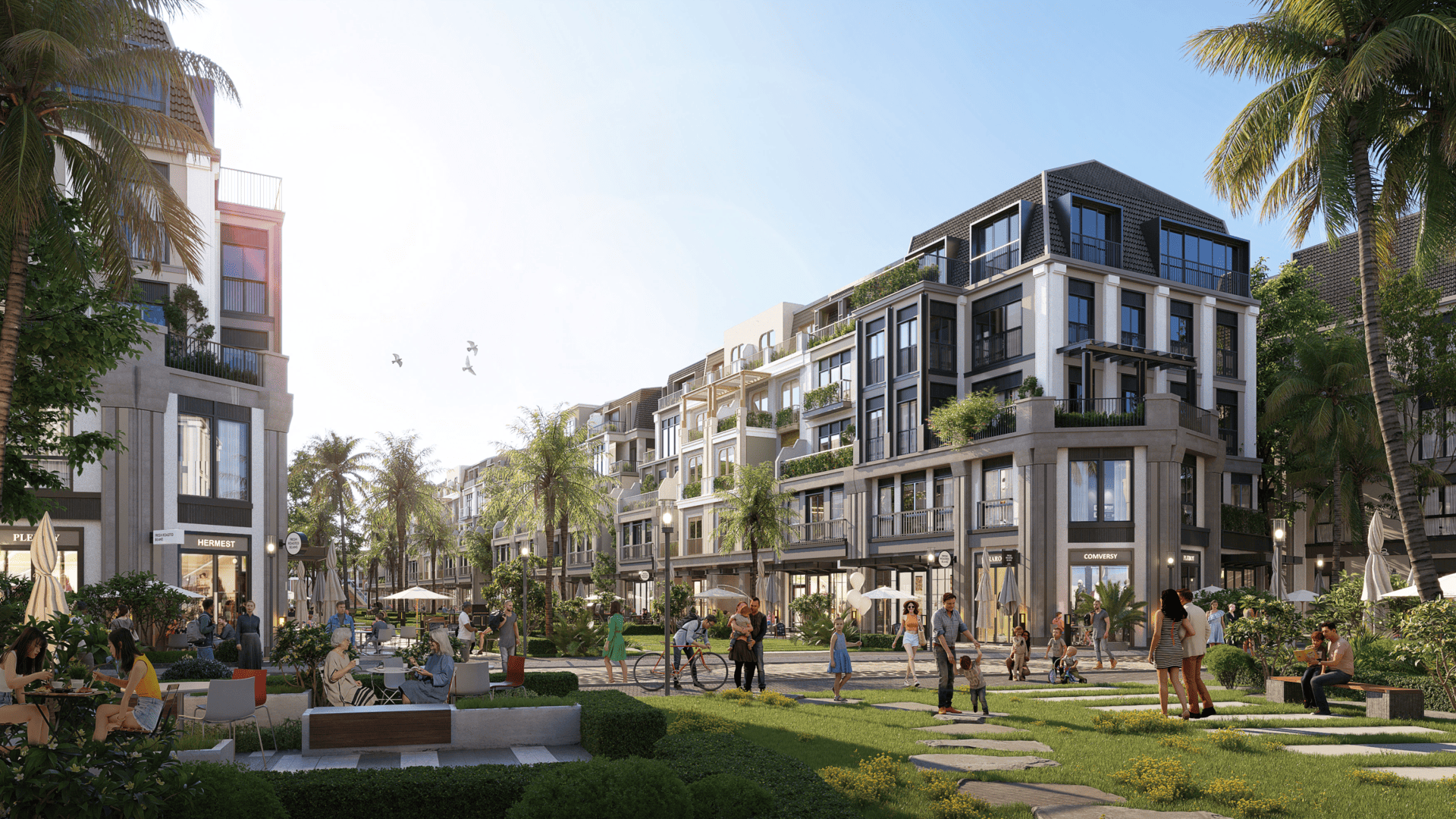 Không gian mua sắm được quy hoạch thành một khu phố thương mại sầm uất, bao gồm các chuỗi cửa hàng thời trang, siêu thị cao cấp, cửa hàng tiện lợi, nhà hàng – quán cà phê, phòng trưng bày và khu mua sắm đặc sản địa phương. Điều này mang lại sự tiện nghi tối đa cho cư dân và du khách mà không cần phải di chuyển ra khỏi khu đô thị.